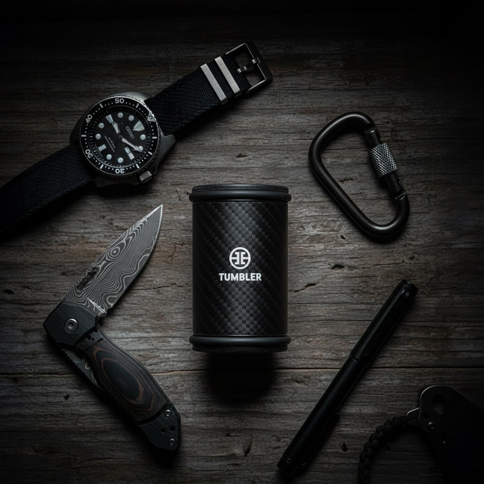 The Tumbler Pro Carbon Fiber Edition isn’t made from carbon fiber — it features a precision-applied carbon fiber-inspired graphic wrap. This allows us to deliver the sleek, matte aesthetic of carbon fiber with a smoother finish and easier everyday care.